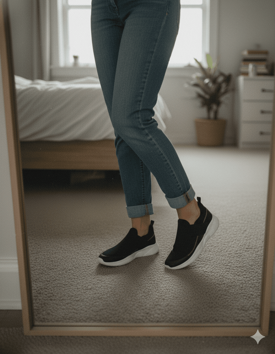 Calce Fácil: Graças ao material que se ajusta perfeitamente aos pés, o Tênis Pluma oferece um calce fácil, garantindo praticidade e conforto em todos os momentos.